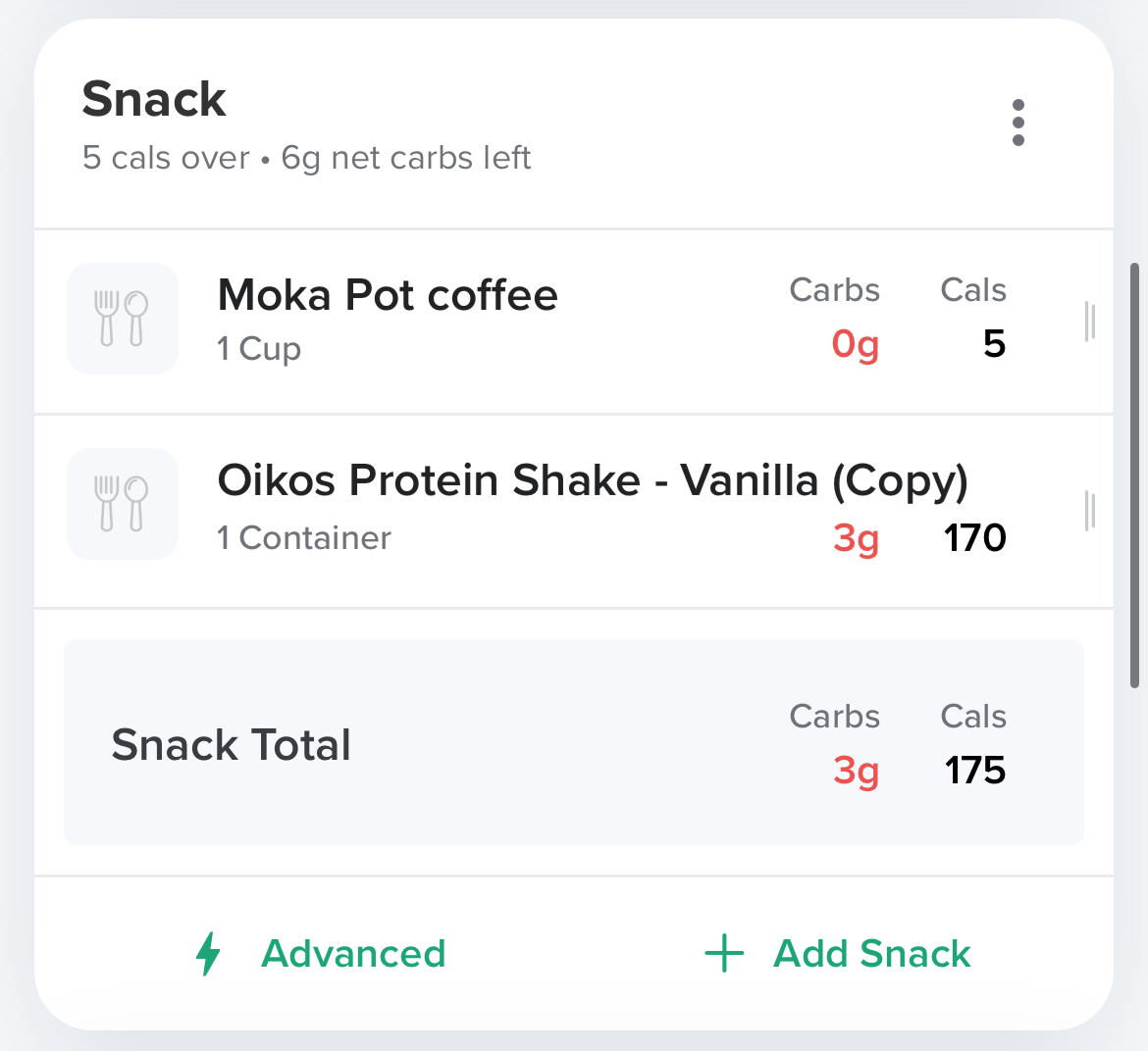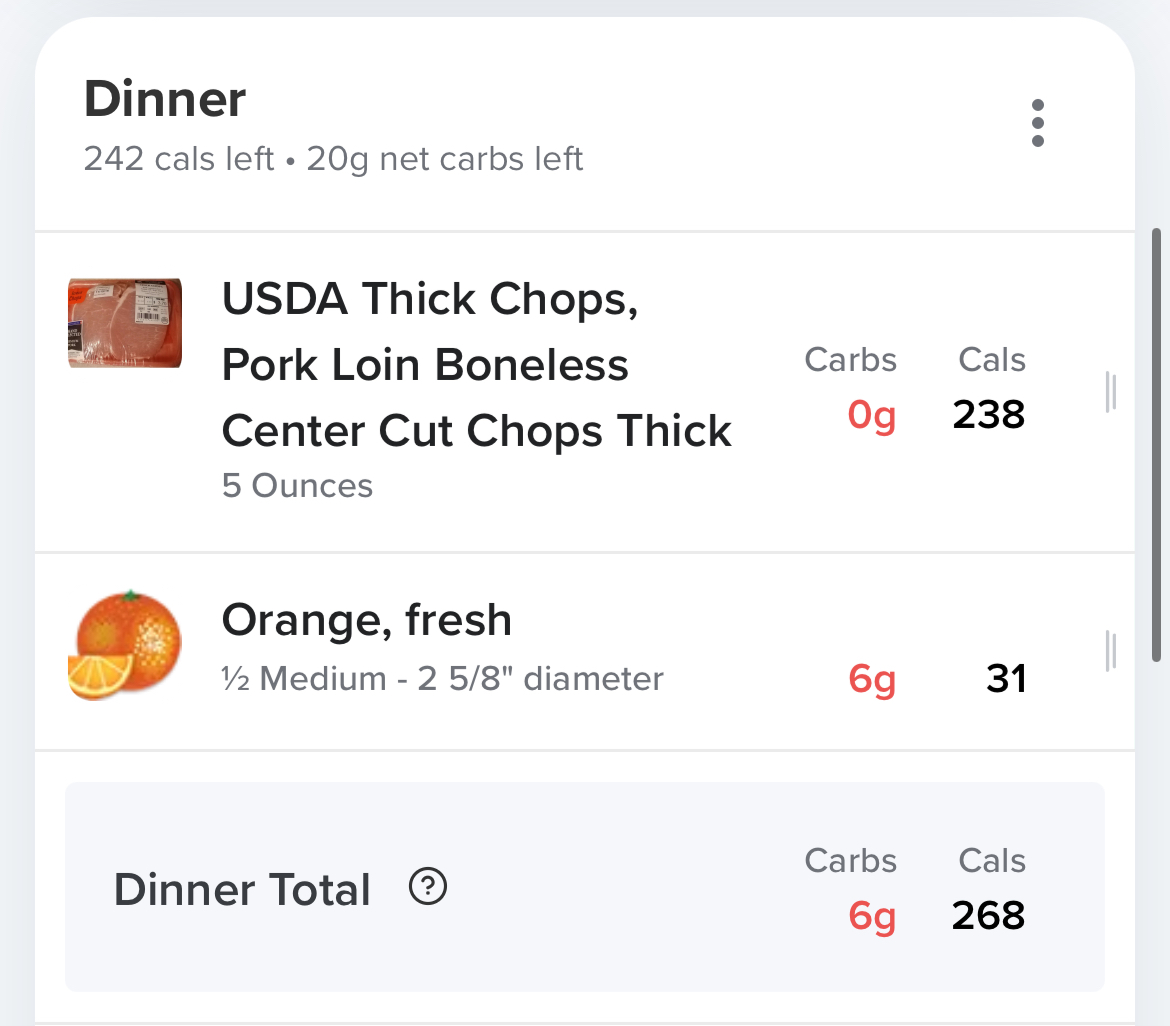 - by entering the food I intend to eat I see how much more I need to eat to support my metabolism