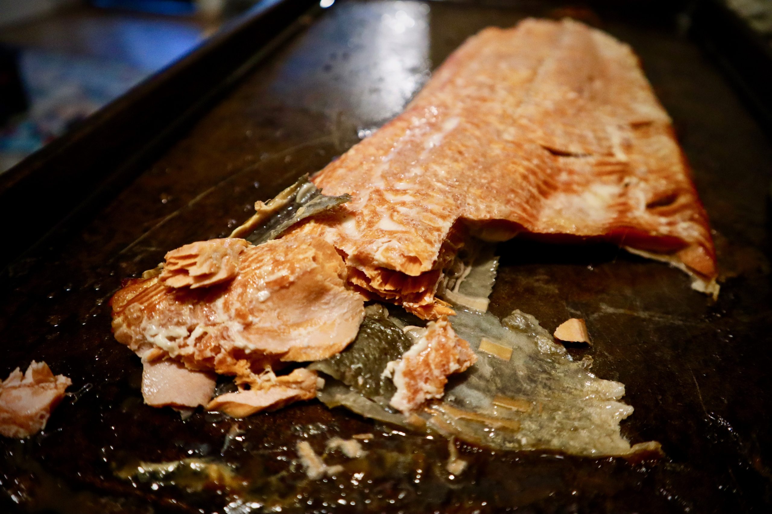 - Wild Salmon roasted in rendered bacon fat