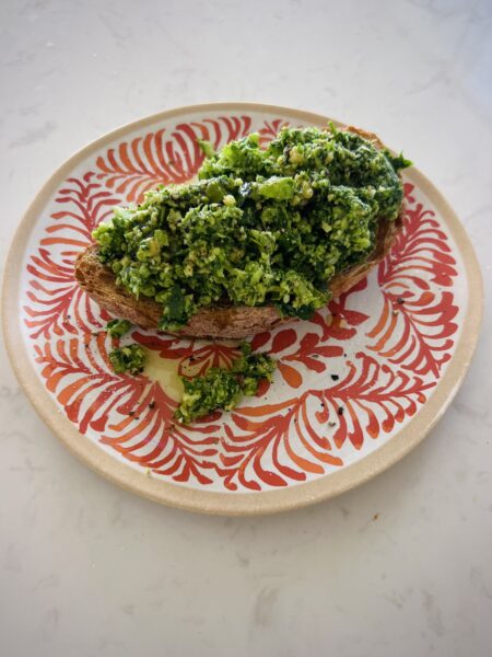 whole wheat sourdough toast + cashew parsley & celery paté (cashews, parsley, garlic, celery, salt + pepper) drizzled with olive oil and balsamic vinegar