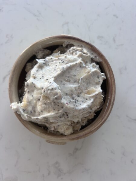 Greek Yogurt + Vanilla Whey Protein, Banana + 1/2 apple & 1 tbsp chia seed