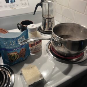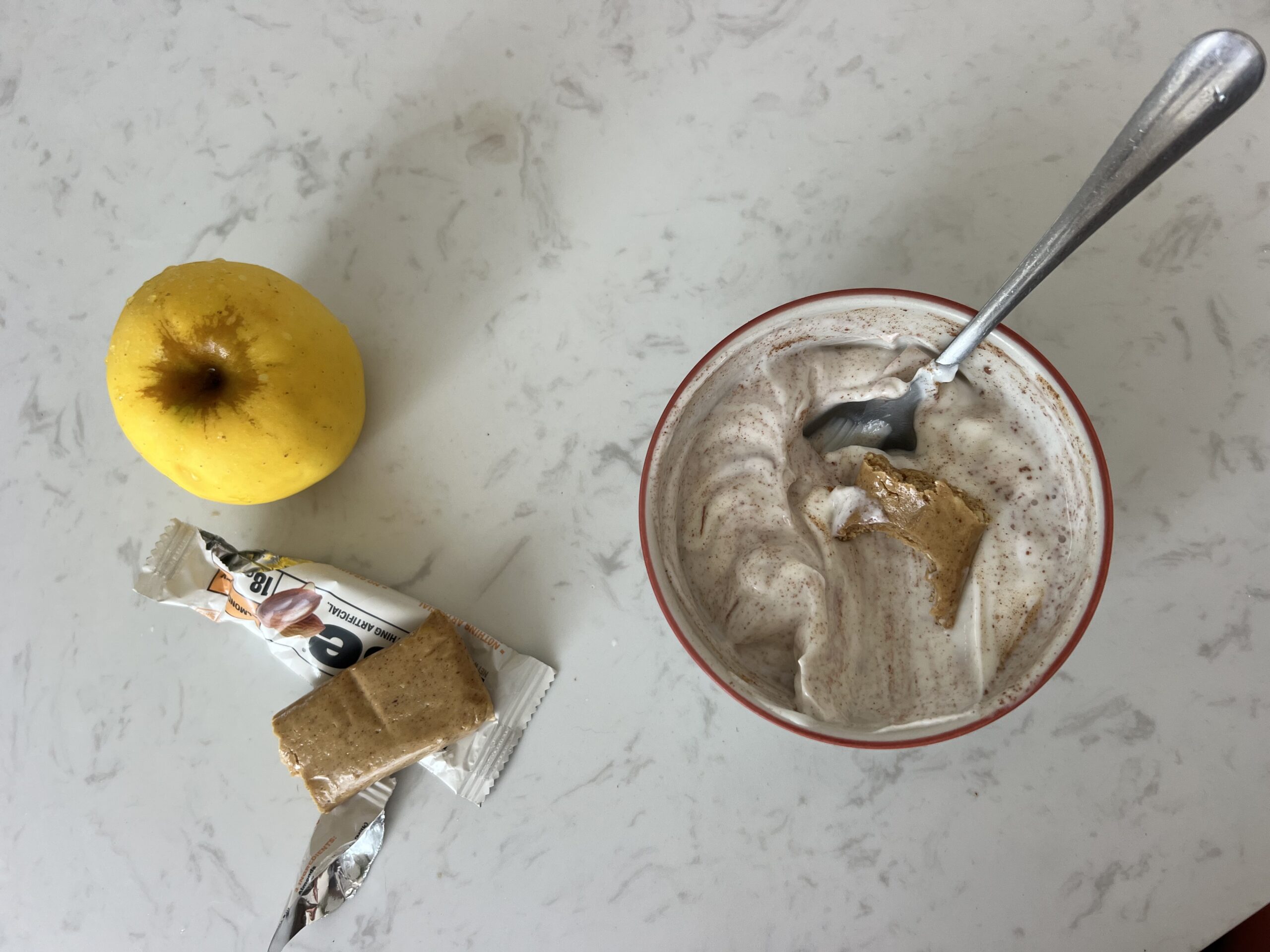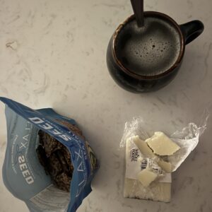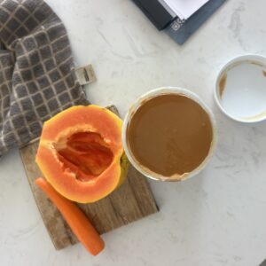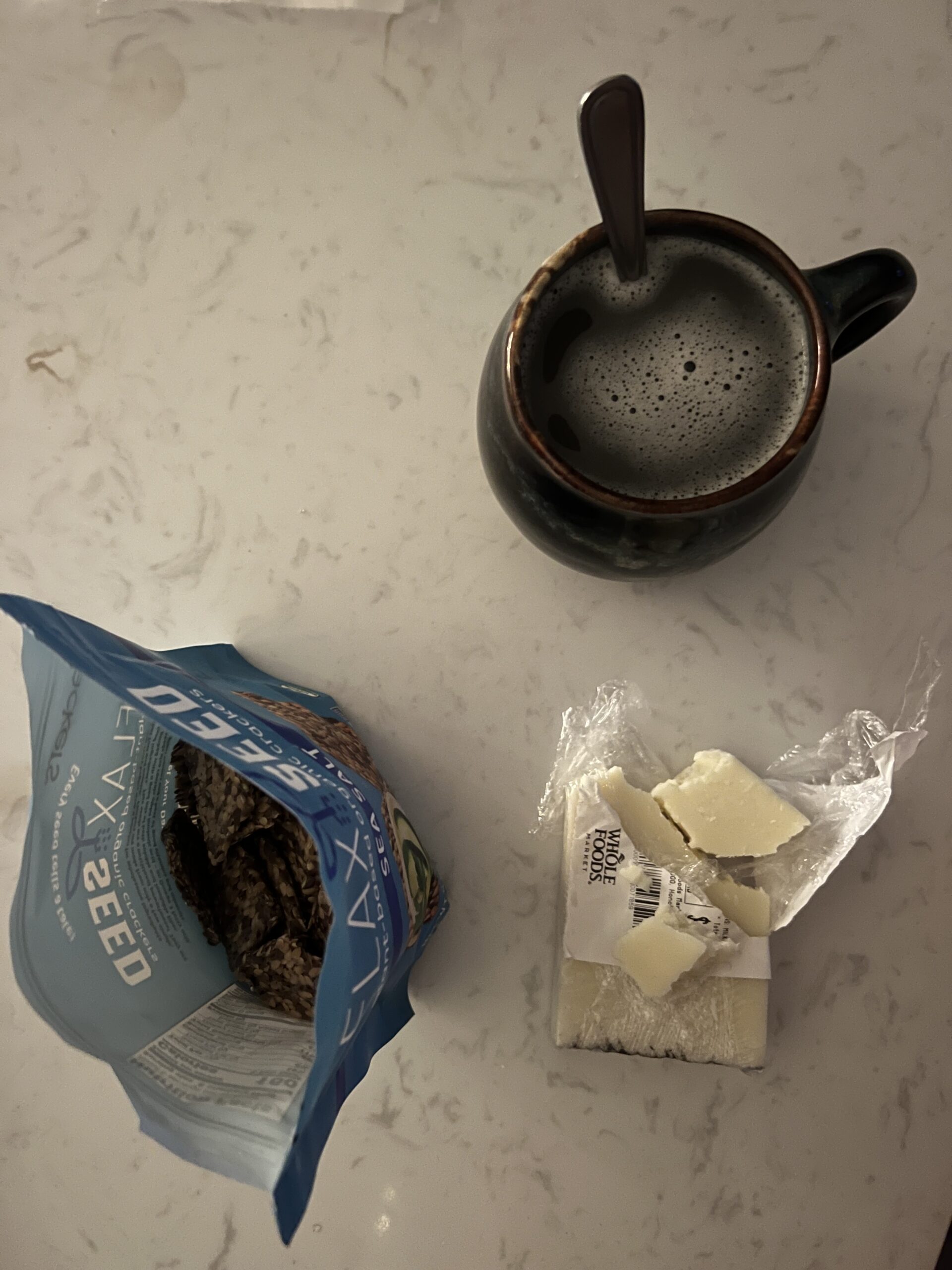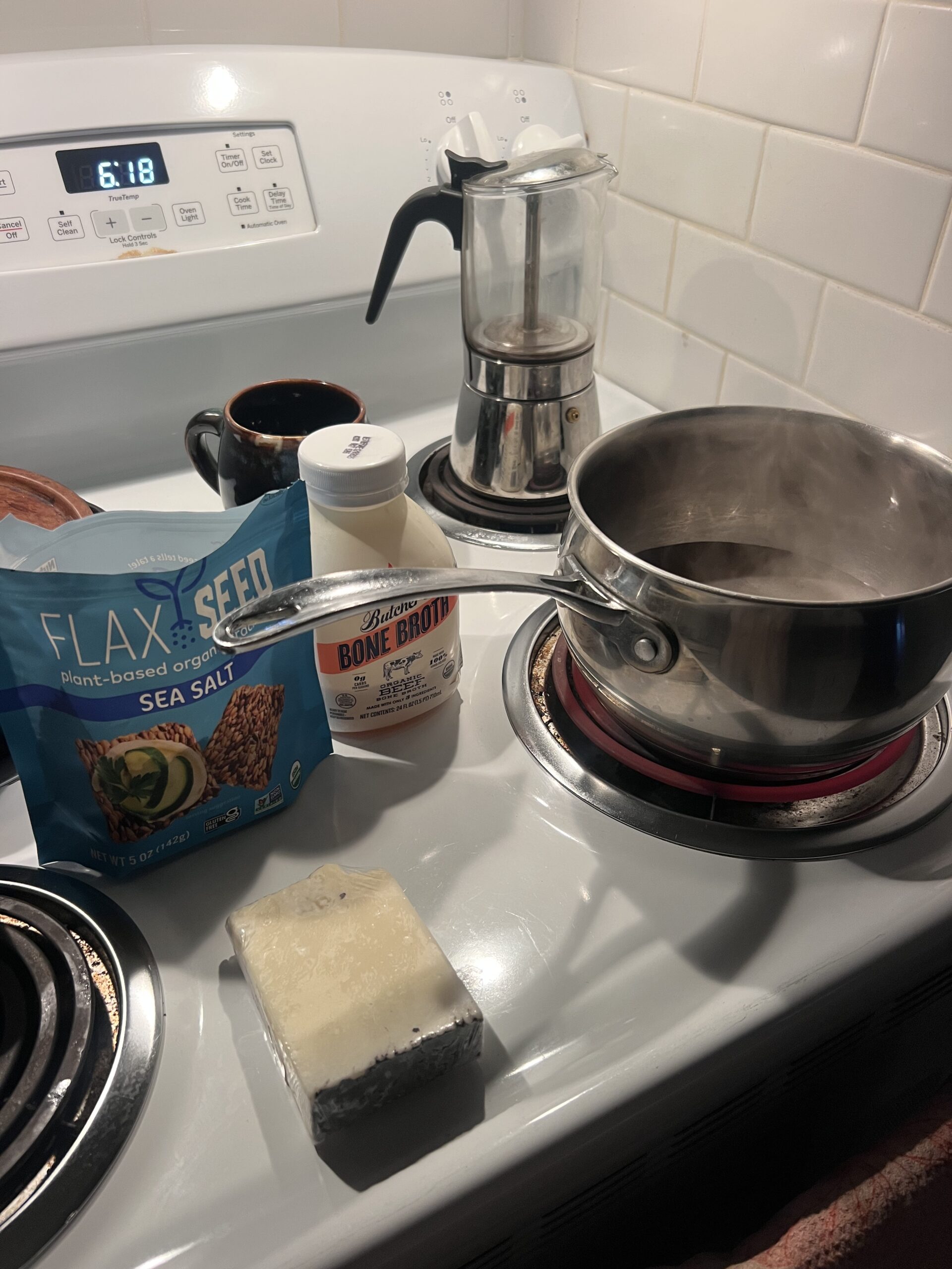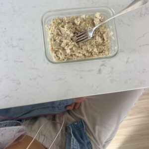 – I meal prepped: tuna salad, baked tofu, fresh fruit, bone broth, collagen + herbal tea