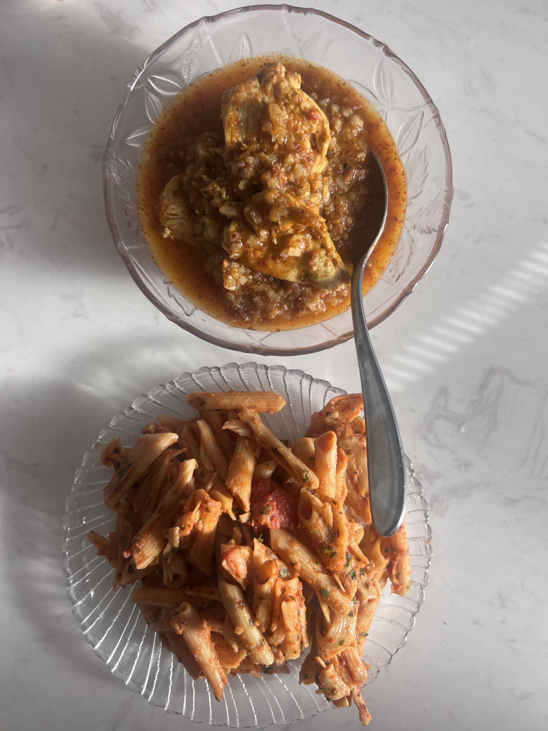 - high protein dinners: chicken + sofrito, lentil pasta & sauce