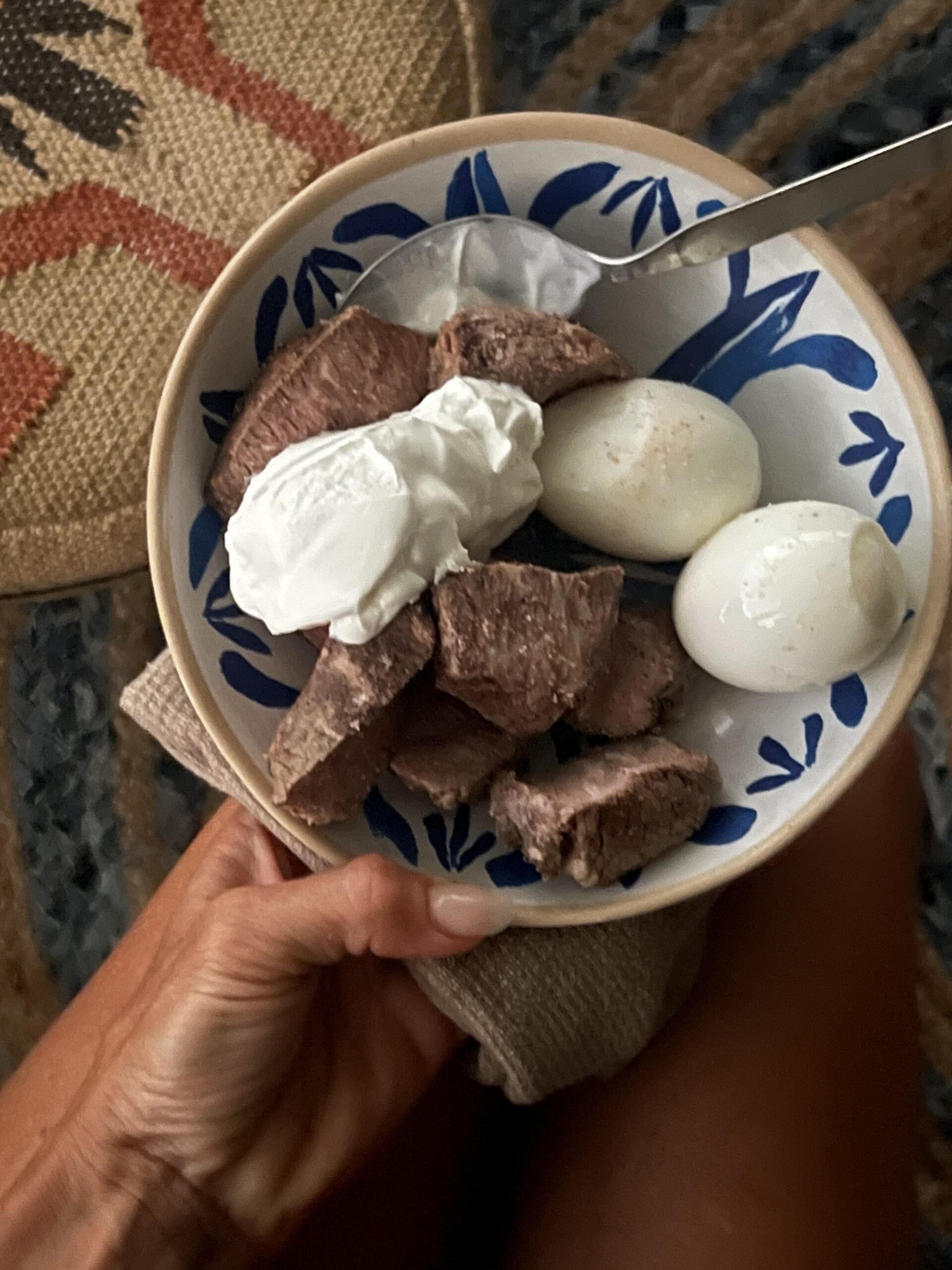 - steak & sour cream + hard boiled eggs